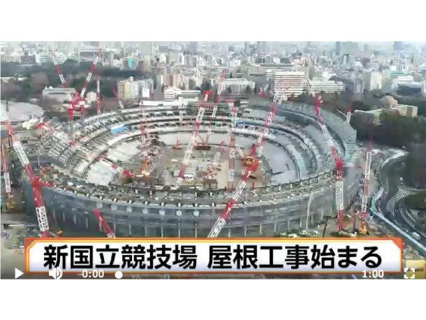 こちらの動画を見れば、国立競技場の屋根工事が一目瞭然。
