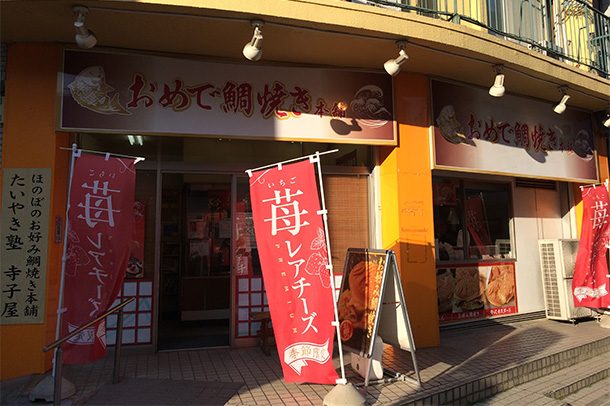 あとはミニたい焼きをいくつかと思ったんですが、季節限定「いちごレアチーズ鯛焼き」のポスター&のぼりがあちこちに。