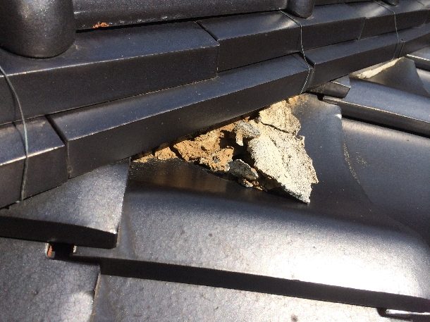 向かいの屋根を工事していた業者から漆喰が剥がれているとの指摘を受け、このまま工事していいのか心配だというお電話をいただきました。