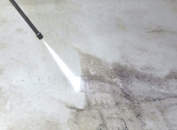 高圧洗浄:外壁表面のホコリ・汚れ・カビ・古い塗膜を除去