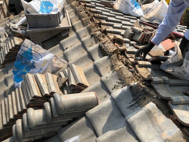 瓦屋根の漆喰が剥がれ、剥がれた箇所を4年前に修繕。その修繕した漆喰がまたかなり落ち始めているという築37年のお宅です。業者からは葺き替えを勧められているとのこと。