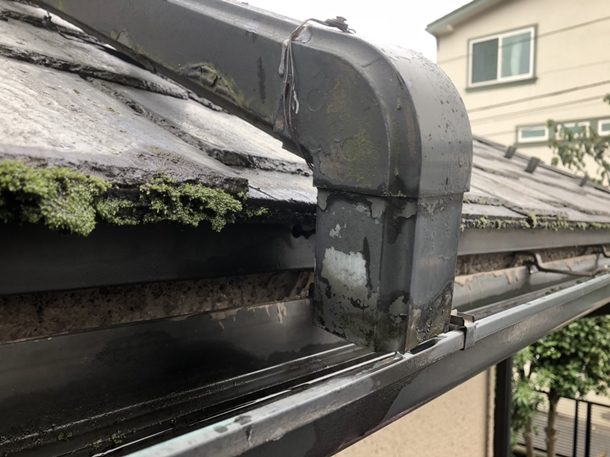 【横浜市北区】「這樋(はいどい)が外れて雨音が気になる」ということで伺いました。