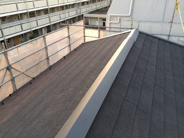 たとえこの棟部分が飛んでしまっても、下には防水シート(ルーフィング)が全面貼られているので即雨漏りということにはなりませんが、重要な部分であることには間違いないので、早めの修理が必要です。ご自宅やご近所にも飛散してトラブルになってもいけませんので。